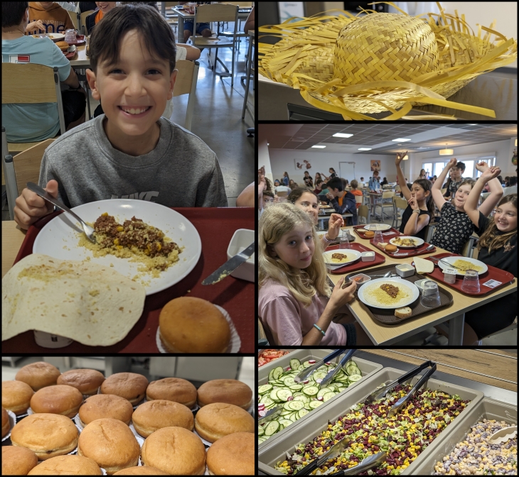 Taccos, salade mexicaine, beignet, sourires et régal, tout était là pour passer un bon moment à la cantine de l’école, avec un repas sur le thème du Mexique. Un grand merci et bravo à toute l’équipe d’Elior.