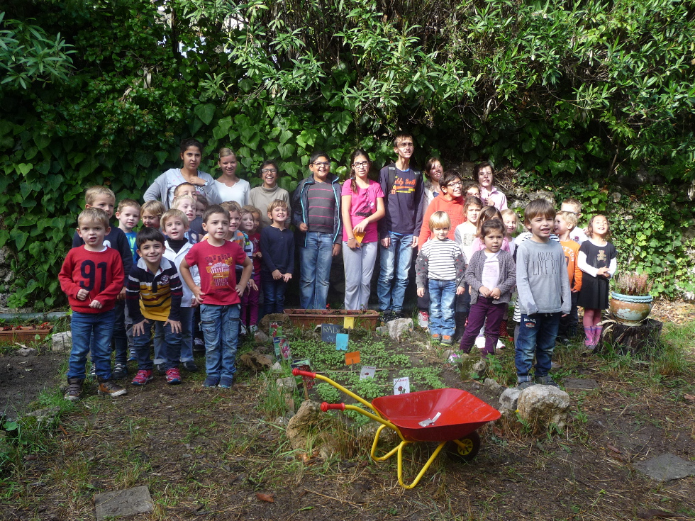 Les petits de maternelle leur ont chanté des chansons, leur ont offerts une primevère dans un joli pot qu’ils avaient peint puis tous ensemble, ils sont allés voir le jardin potager…