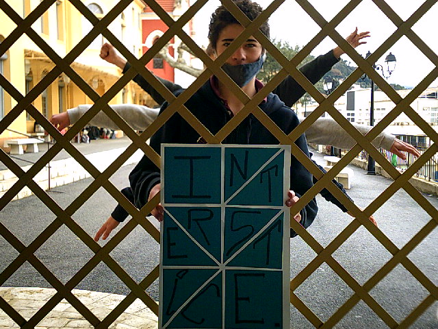 Les élèves de 3èmes envahissent le lycée et illustrent un mot avec le corps, les lieux et les lettres du mot choisi.